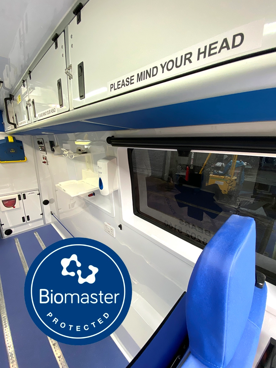 Plus in ALL our Ambulance interior builds we use Biomaster silver based antimicrobial technology making the working environment:- SAFE TESTED PROTECTED for LIFE find out more HERE