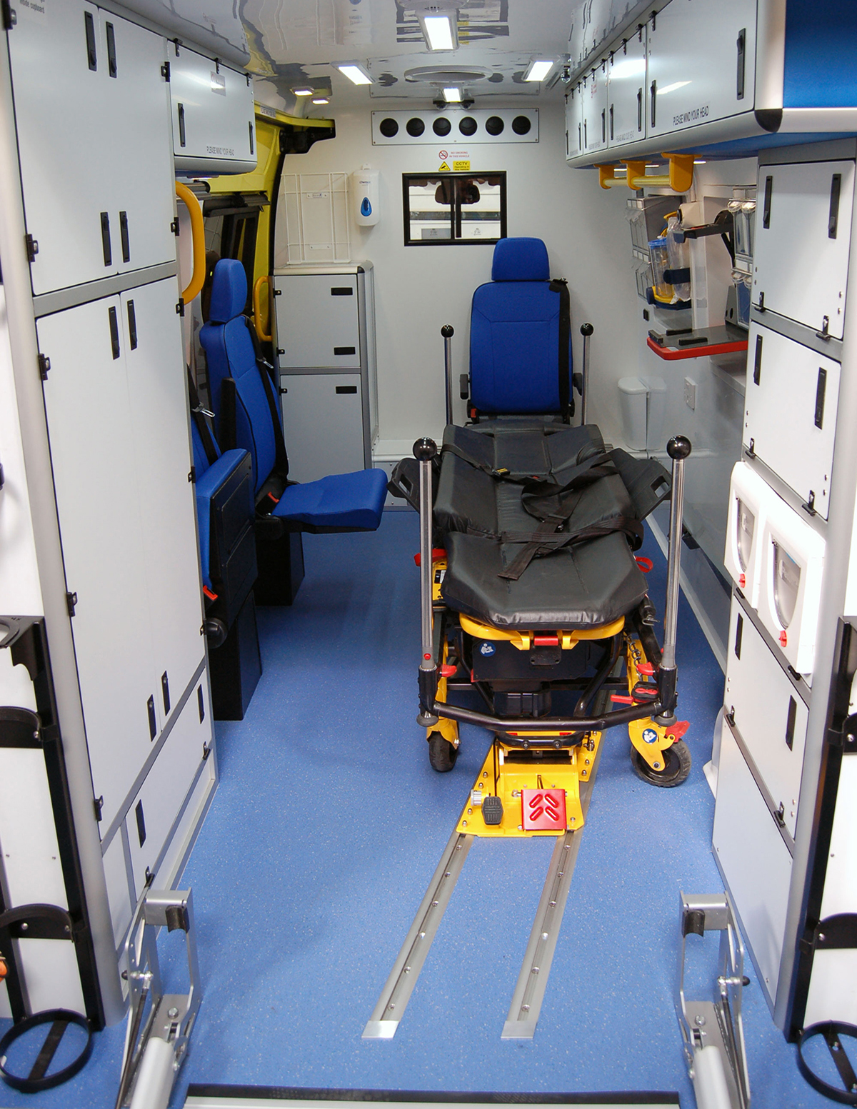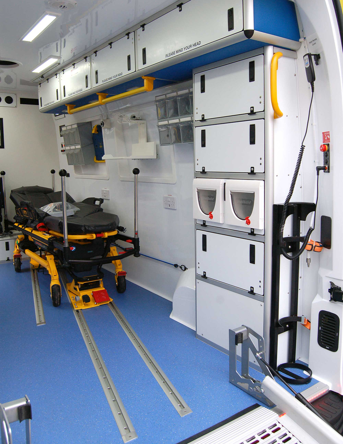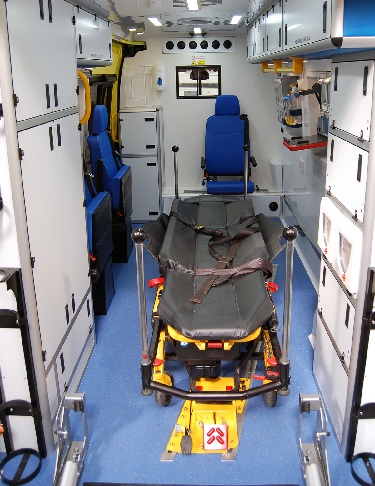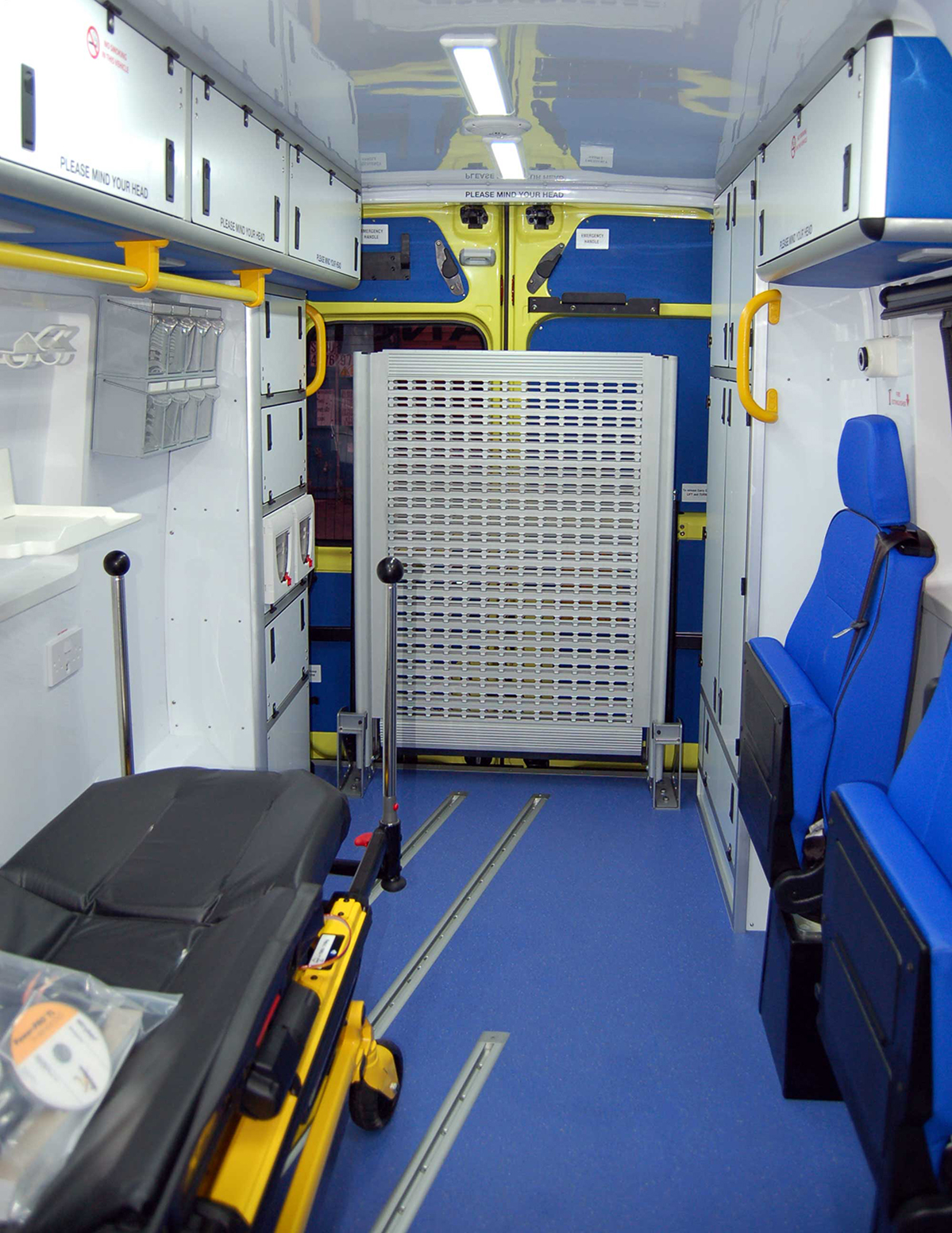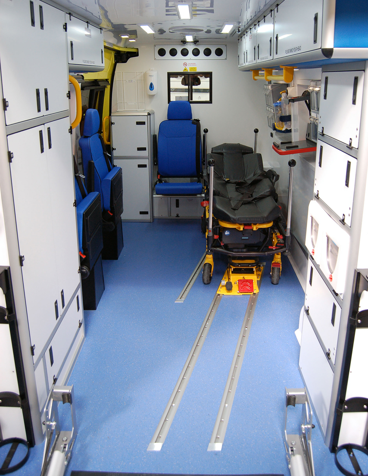 Combine the OTF stretcher track lock system with our patented NMI medic seat range. Tip /fold and turn bulkhead or wall side seats that slide across so the medic is close enough to treat the stretcher patient whilst safe and belted.
