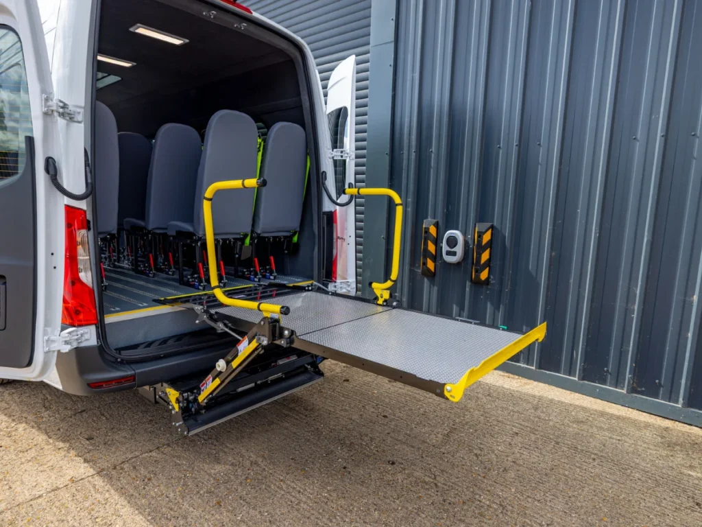 A robust, wheelchair-friendly boarding solution that keeps the cabin clear and speeds up turnaround. The underfloor PLS Access cassette lift stows neatly beneath the vehicle, freeing interior space and deploying quickly when needed. For builds where internal stowage is preferred, an onboard passenger lift is also available.